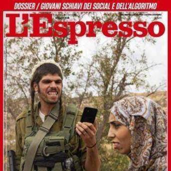这张题为“凌辱”的封面照,定格了武装以色列定居者冷笑用手机拍摄巴勒斯坦惊恐妇女的画面。